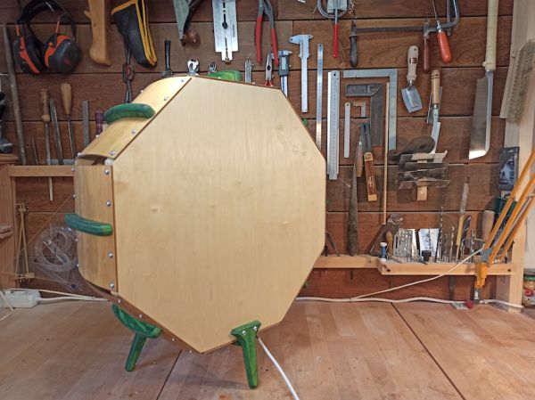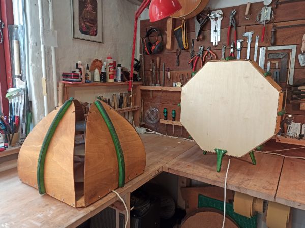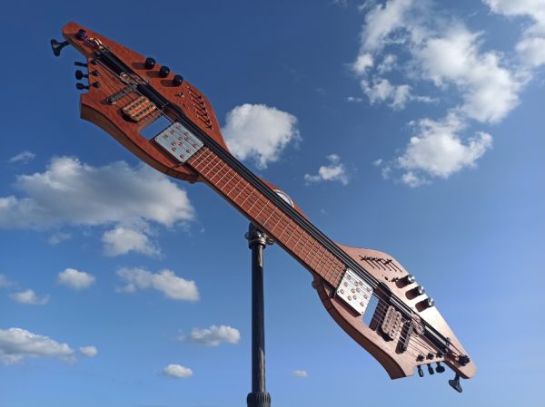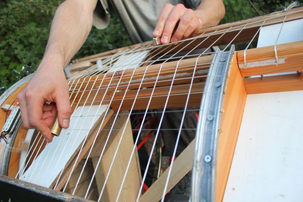The Spheric Harp is a a harp like instrument inspired by a bicycle wheel and the west african Kora. I think it has a sound similar to the voice of a sheep, quite percussive.